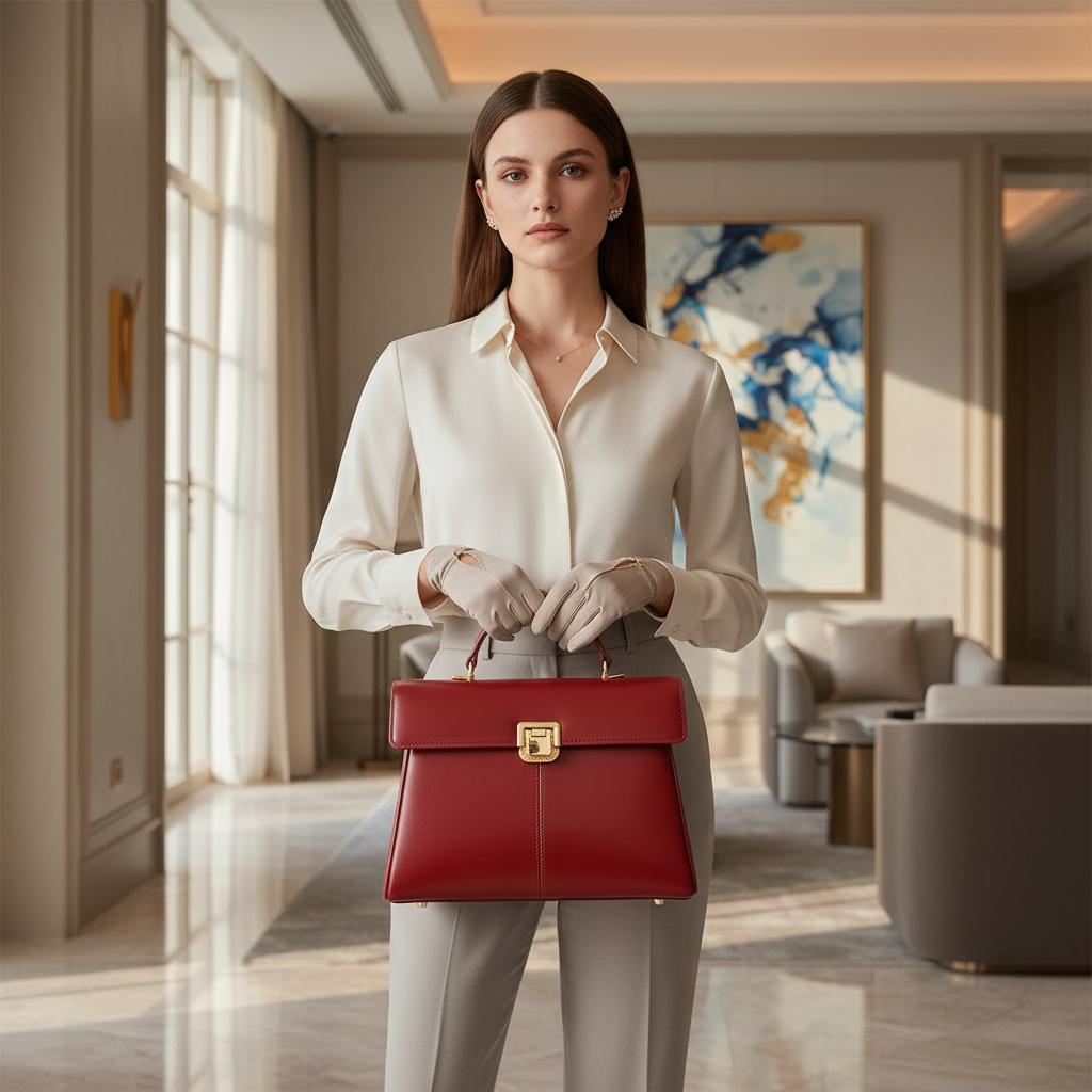 Elegante e sofisticada, esta bolsa em couro possui design estruturado e acabamento impecável, perfeita para quem busca uma peça luxuosa e prática ao mesmo tempo.