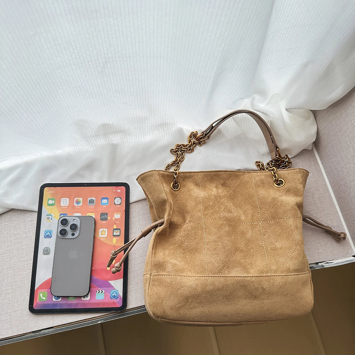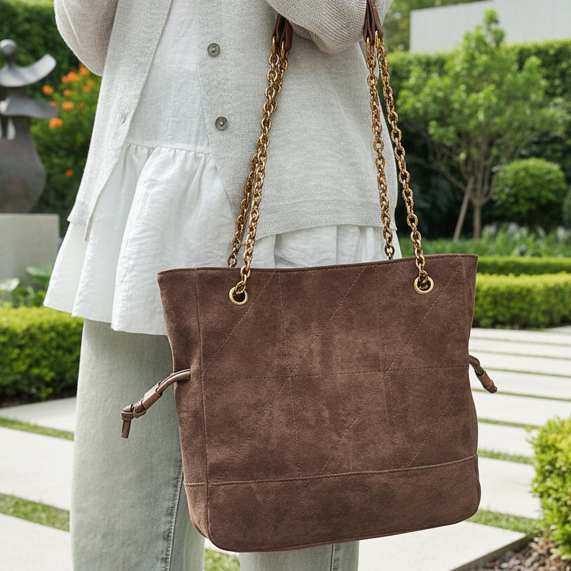 Bolsa Marrocos Ombro Suede com Corrente – Elegância com Toque Sofisticado