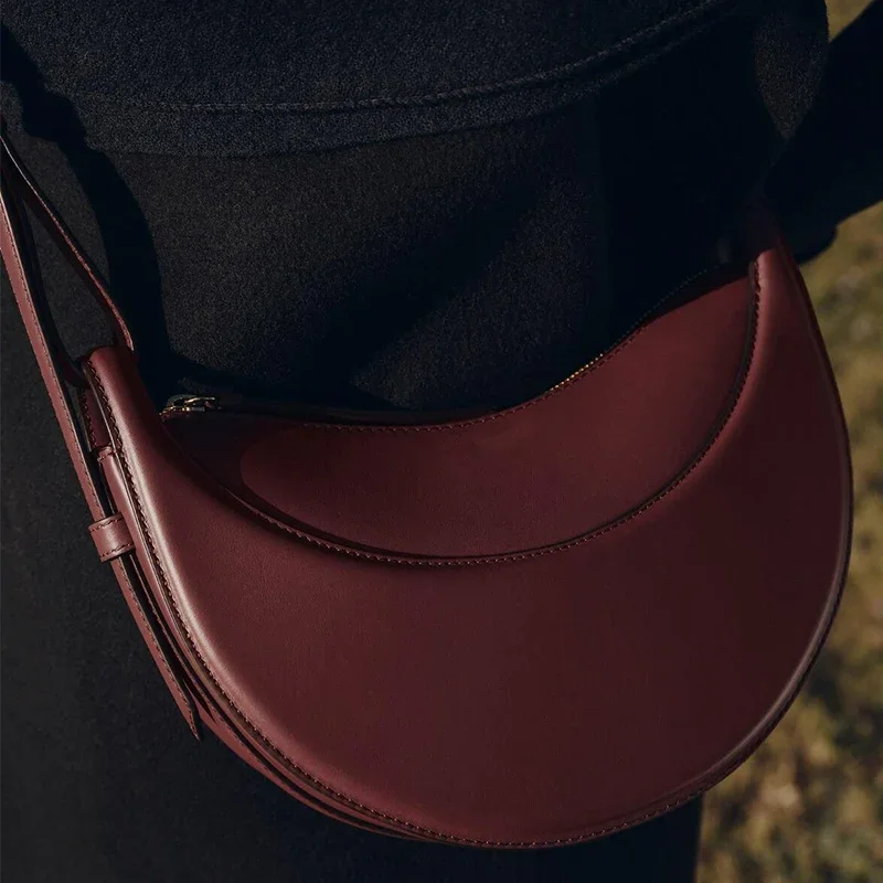 Elegante, moderna e atemporal, esta bolsa feminina em couro legítimo traz o melhor do estilo francês em um design meia-lua sofisticado.
