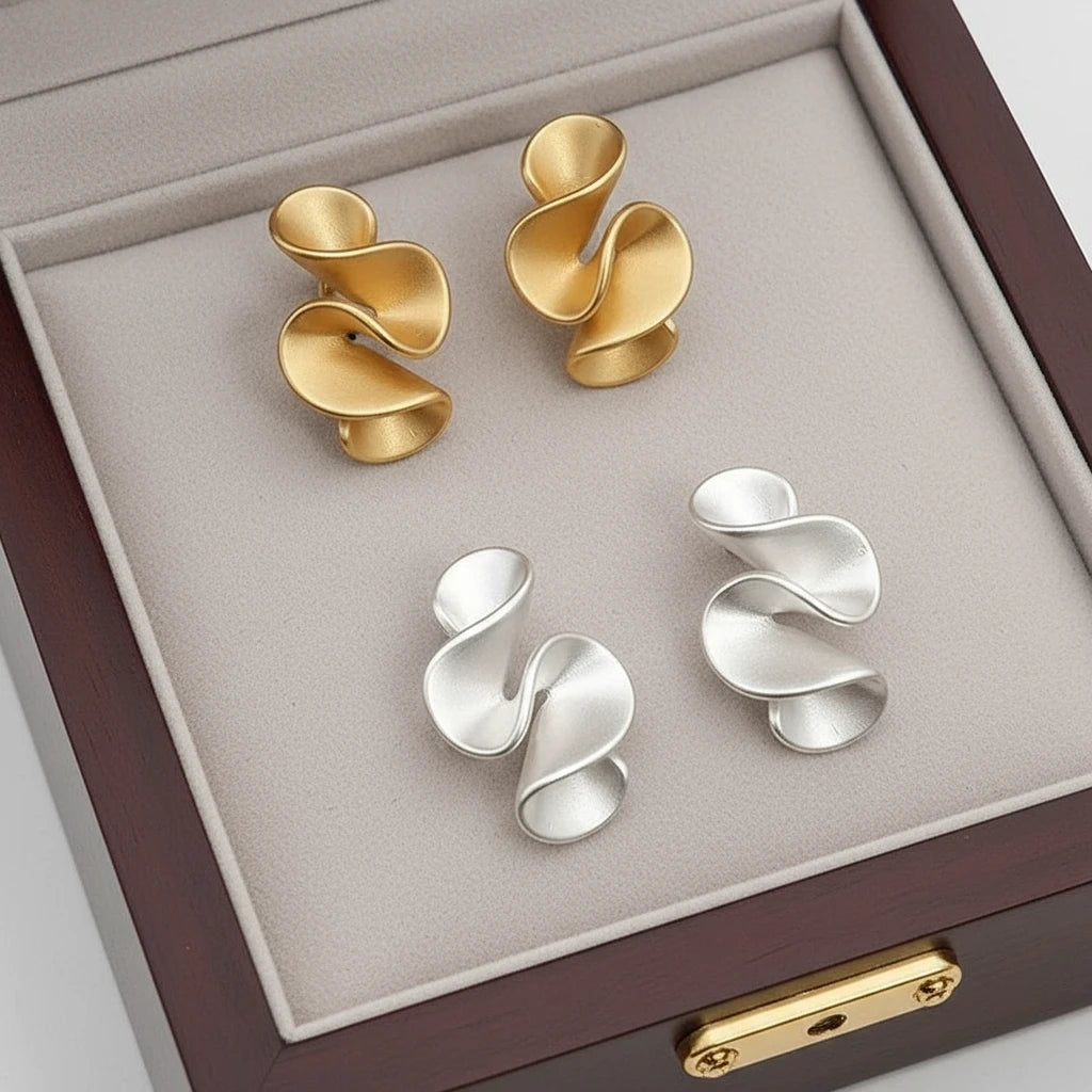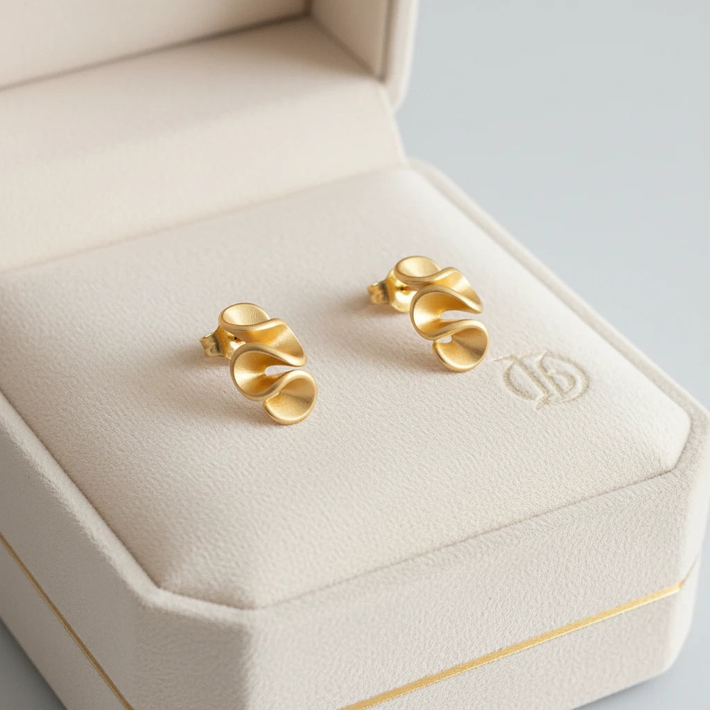 Brinco Flor Torcida em Prata 925 com Banho de Ouro 18K – Minimalista e Sofisticado