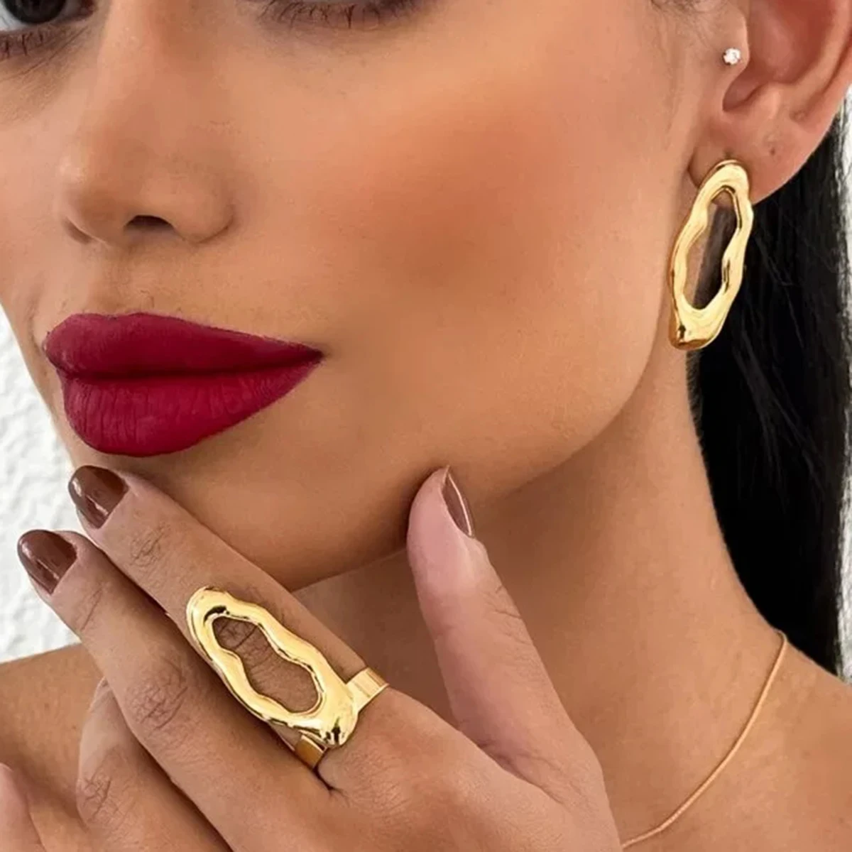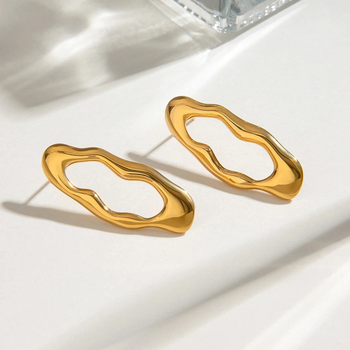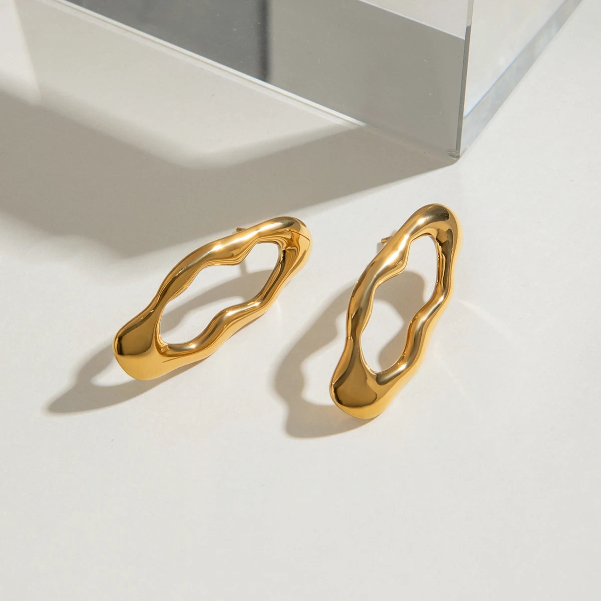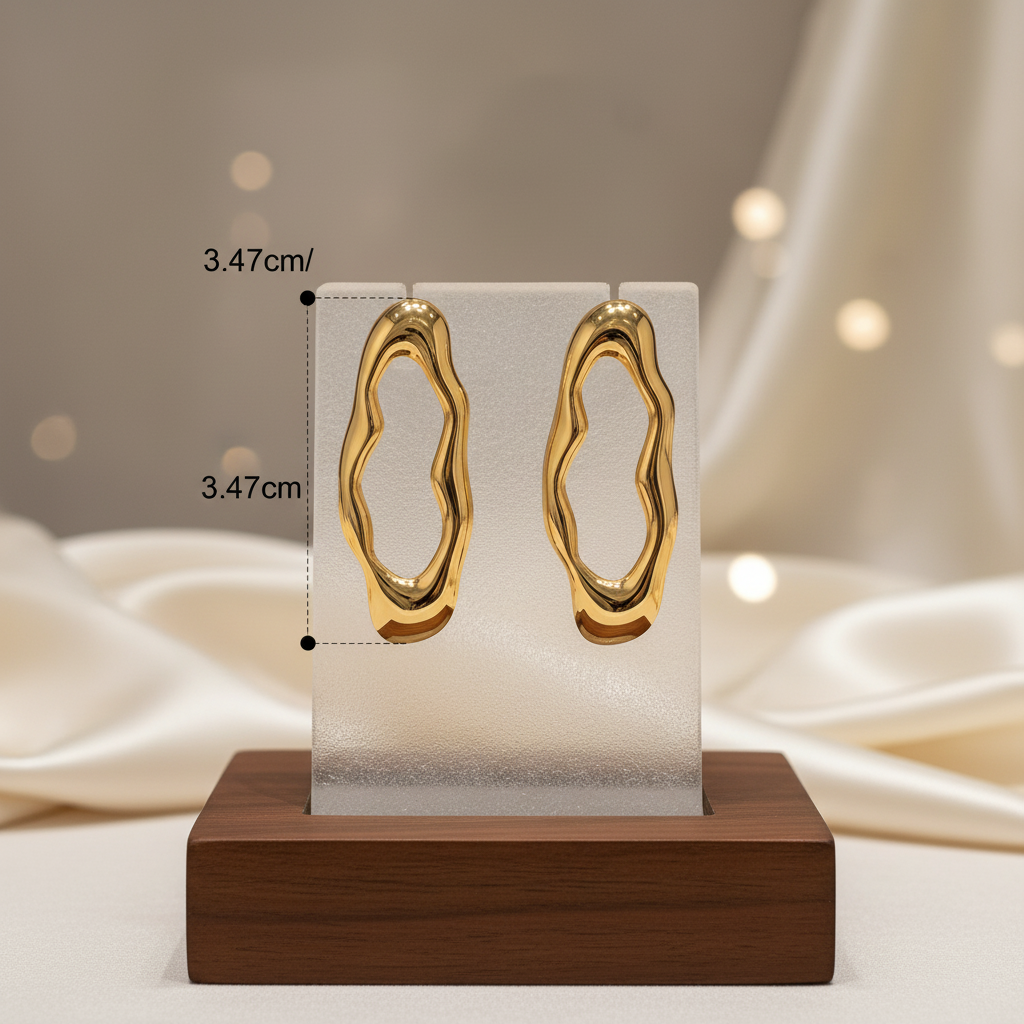 Com design oval irregular e acabamento vazado, esses brincos trazem um visual moderno e minimalista que combina com qualquer estilo.