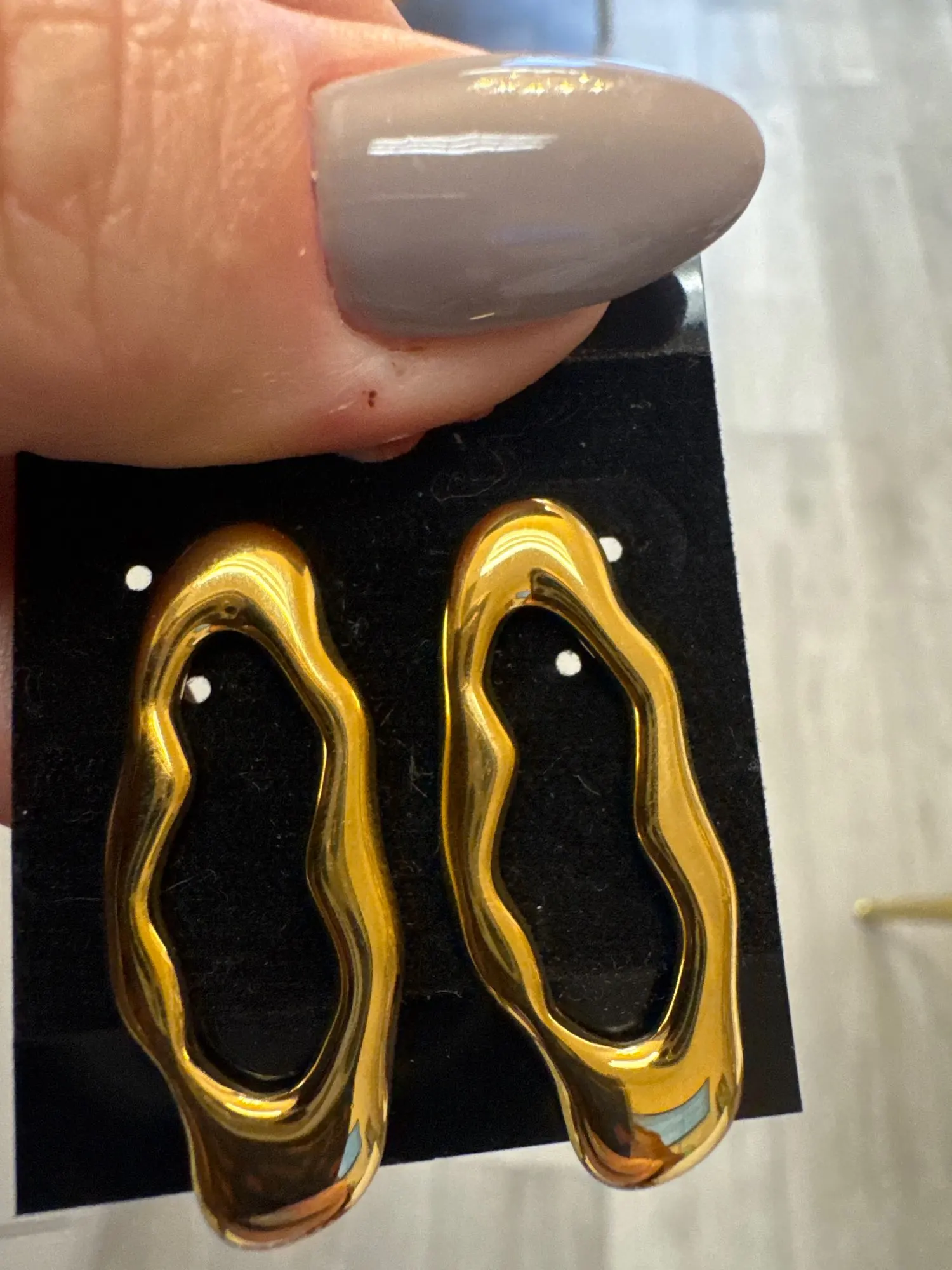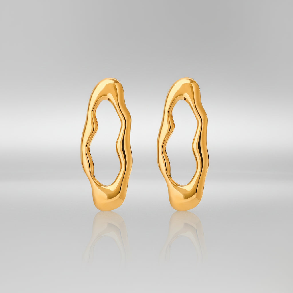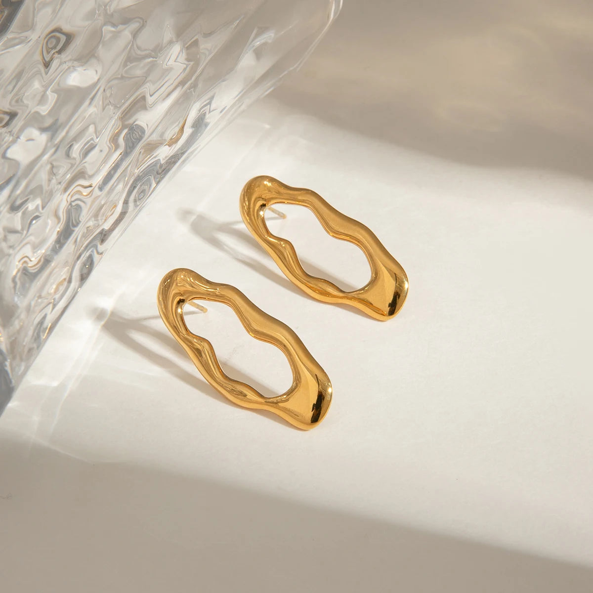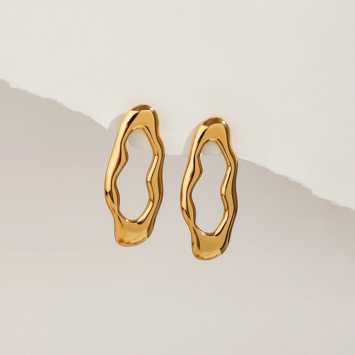 Com design oval irregular e acabamento vazado, esses brincos trazem um visual moderno e minimalista que combina com qualquer estilo.