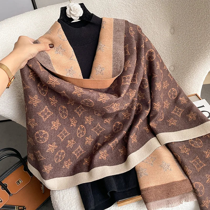 Esse cachecol feminino com efeito dupla face traz um visual retrô sofisticado, combinando com diversos estilos e ocasiões. Feito em poliéster com toque semelhante ao cashmere, oferece aquecimento sem abrir mão do estilo. Ideal para quem busca um acessório versátil e moderno.