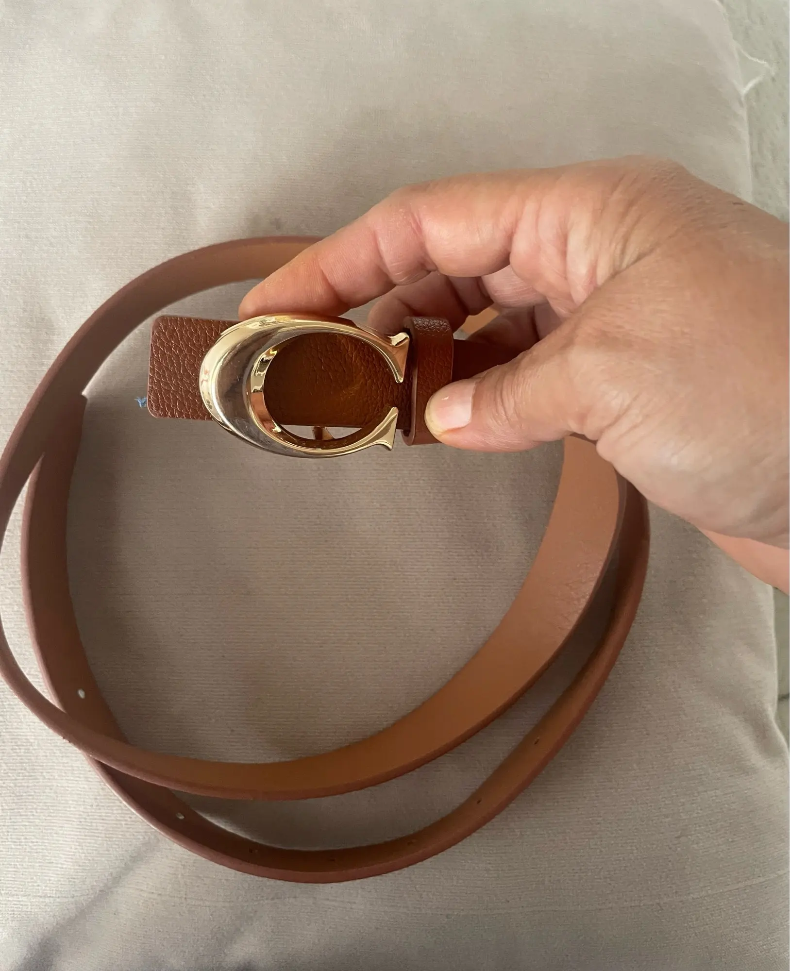 O Cinto Versátil com letra C é um acessório funcional e sofisticado, ideal para compor produções casuais com elegância.