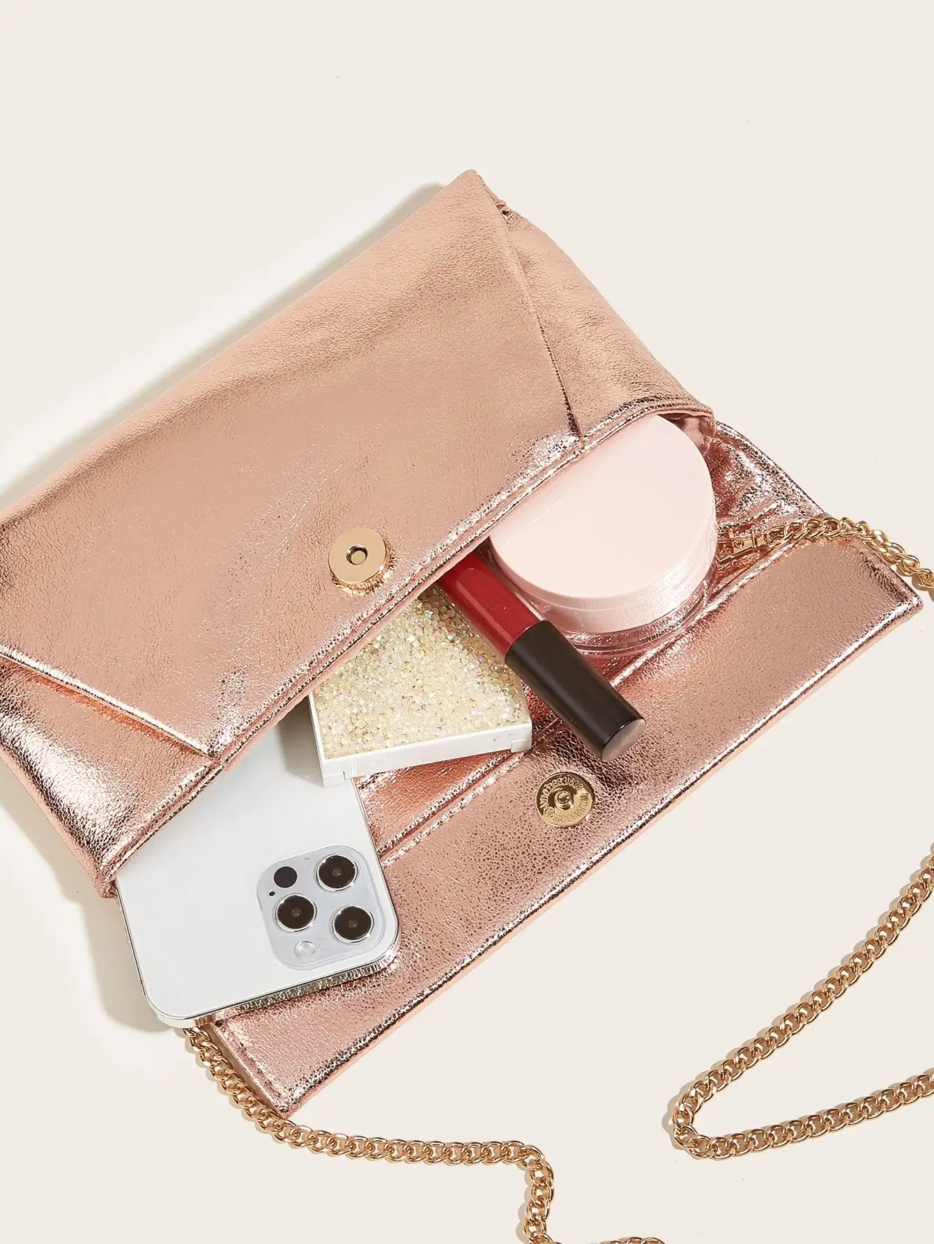 Clutch Envelope com Brilho e Corrente – Elegância com Design Sofisticado