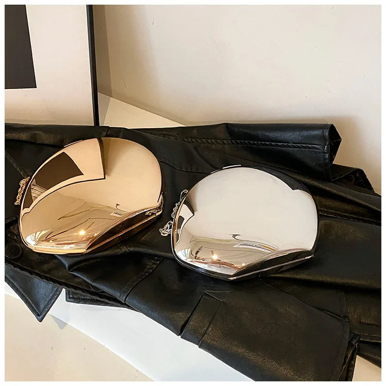 ✨ Clutch Acrílica Shell Shape – Luxo em Metal Dourado & Prateado