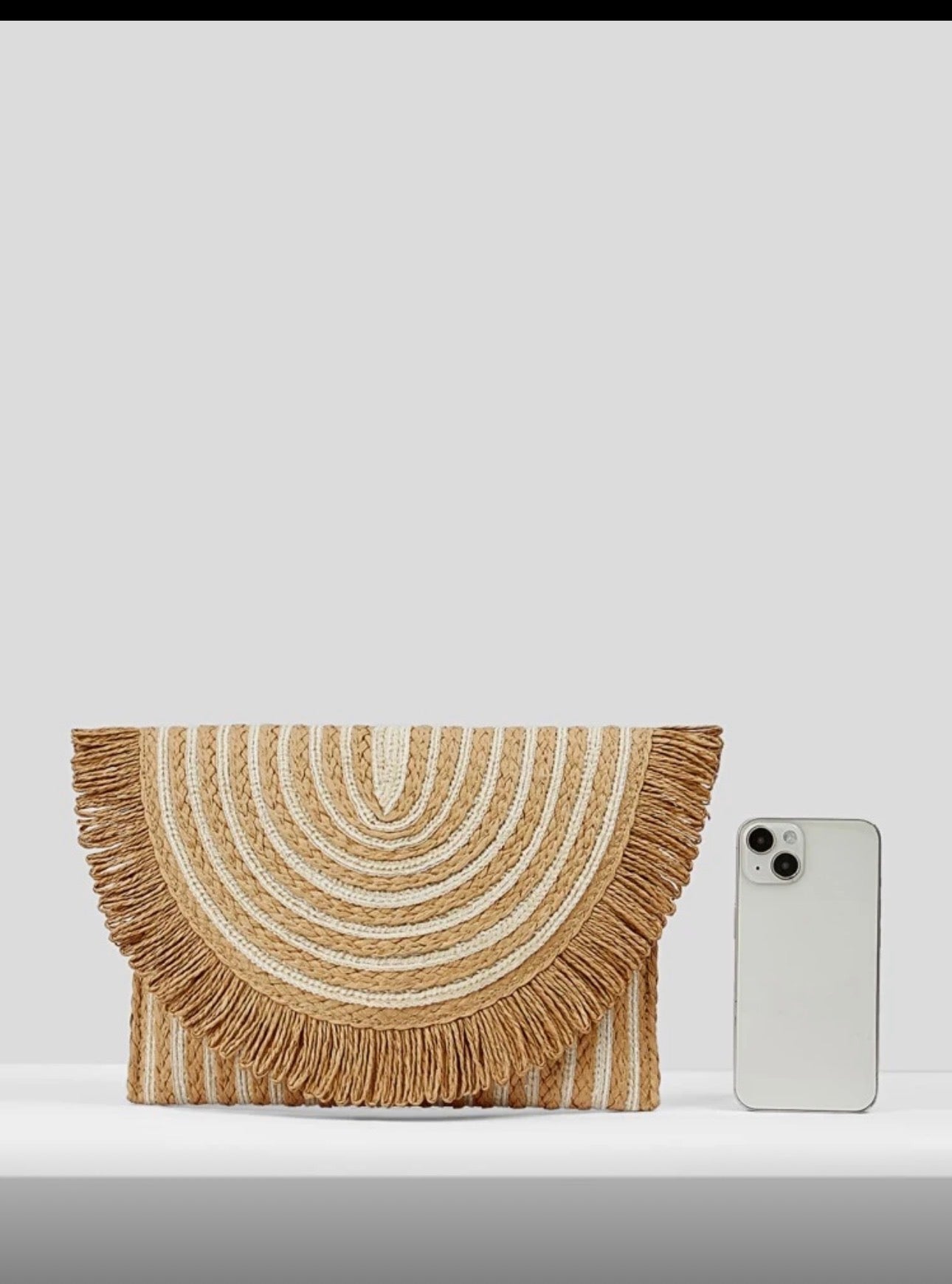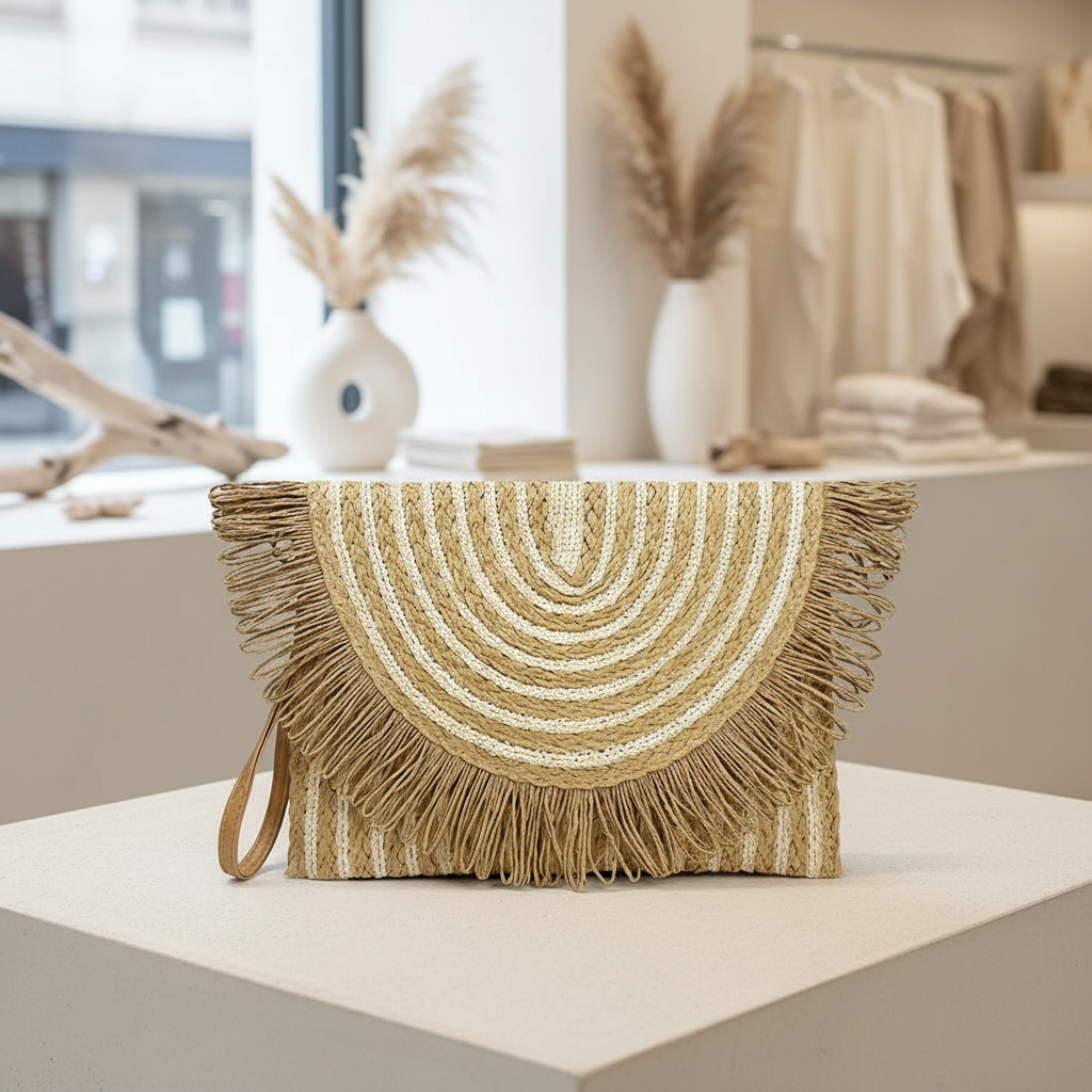 Uma clutch leve, artesanal e cheia de charme, feita em palha trançada à mão para trazer aquele toque natural perfeito para o verão.