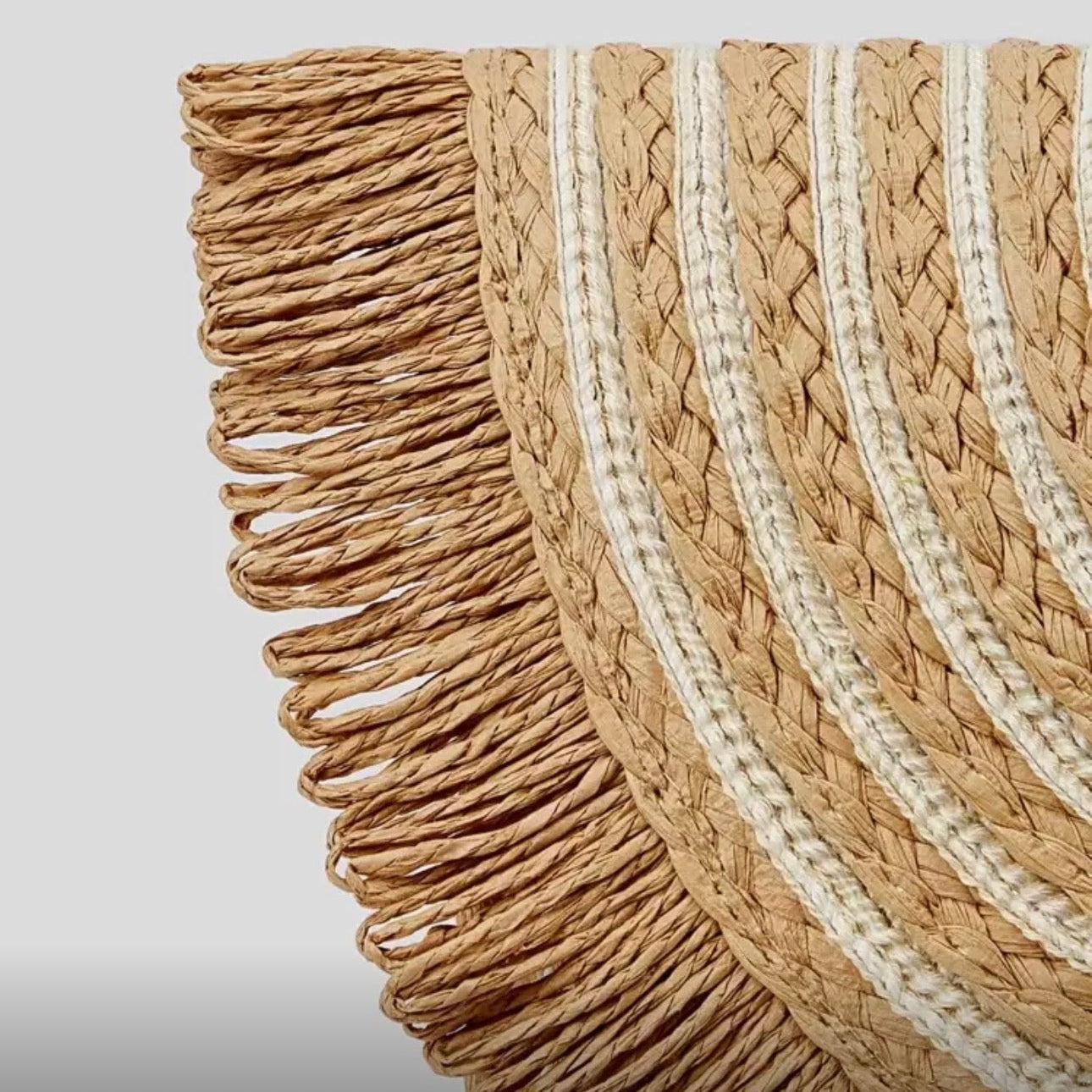 - Material Principal: Palha trançada (handmade) + Poliéster