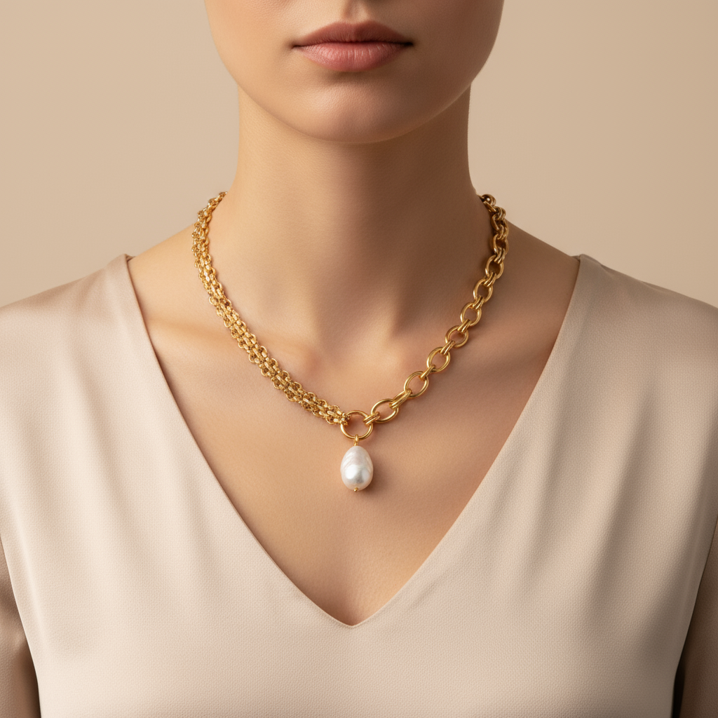 Colar com Pérolas – Corrente em Aço Inoxidável