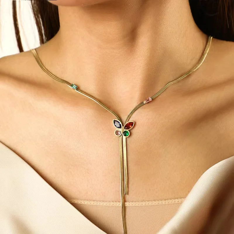 Colar Longo em Aço Inoxidável 316L com Pingente de Zircônia – Elegância & Sofisticação