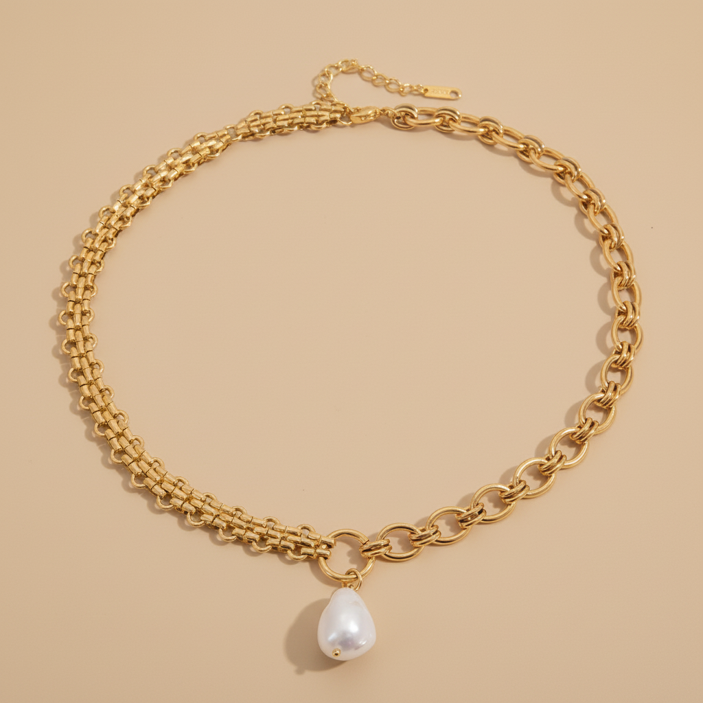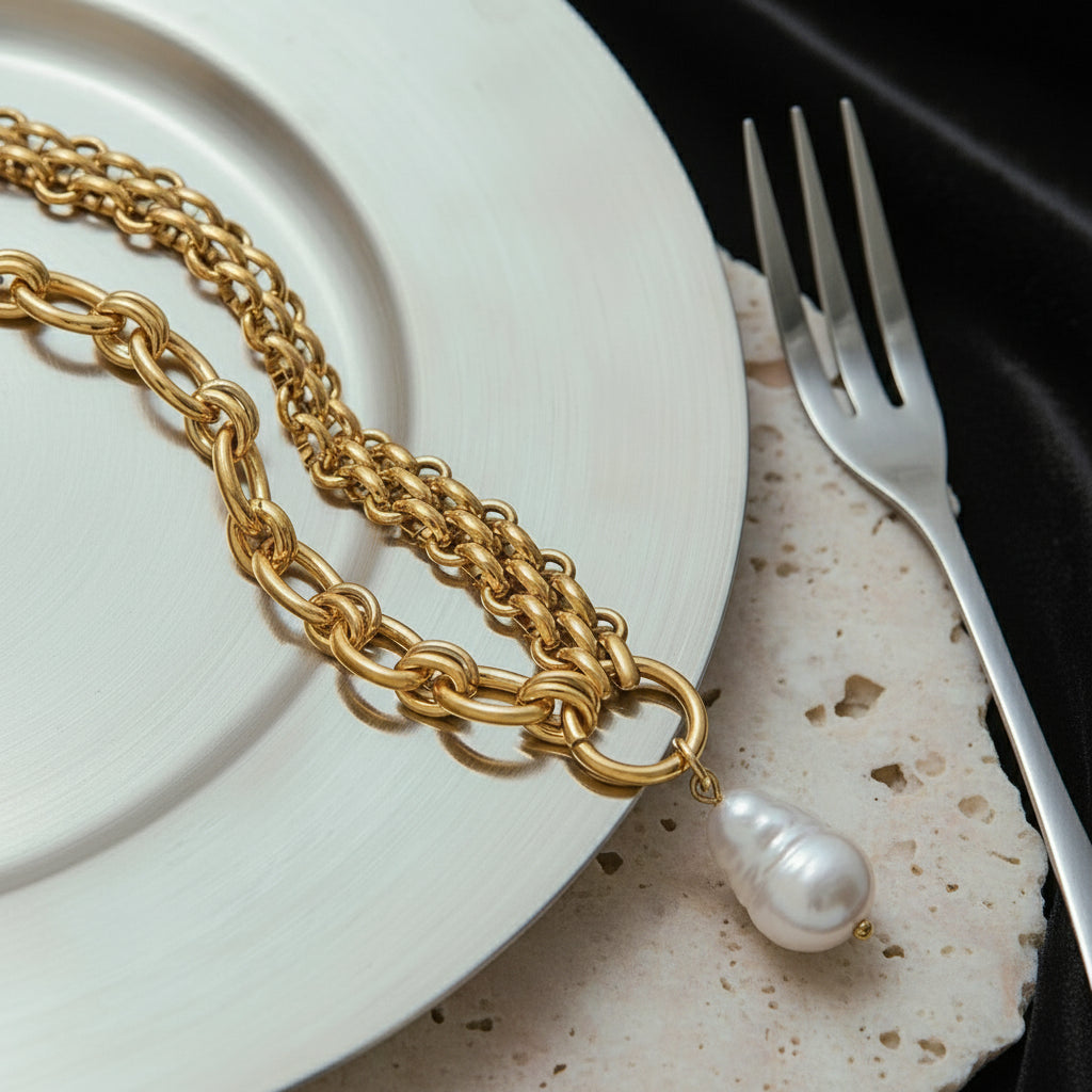 Colar com Pérolas – Corrente em Aço Inoxidável