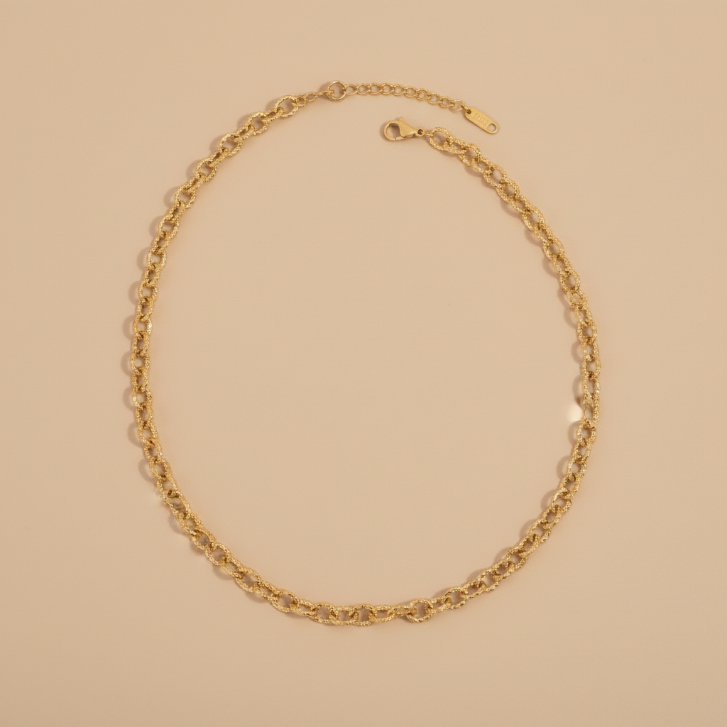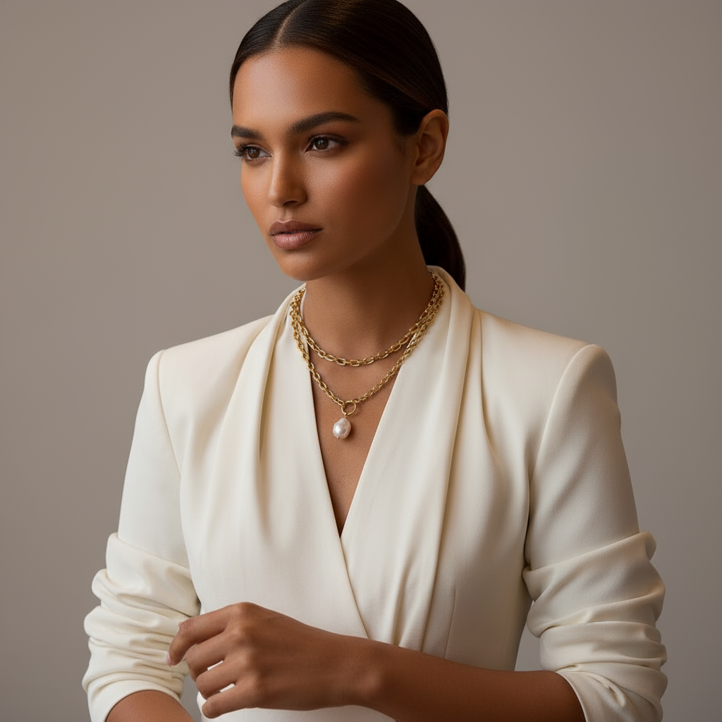 Com corrente estilo watch strap e acabamento artesanal, este conjunto possui um equilíbrio perfeito entre delicadeza e presença.