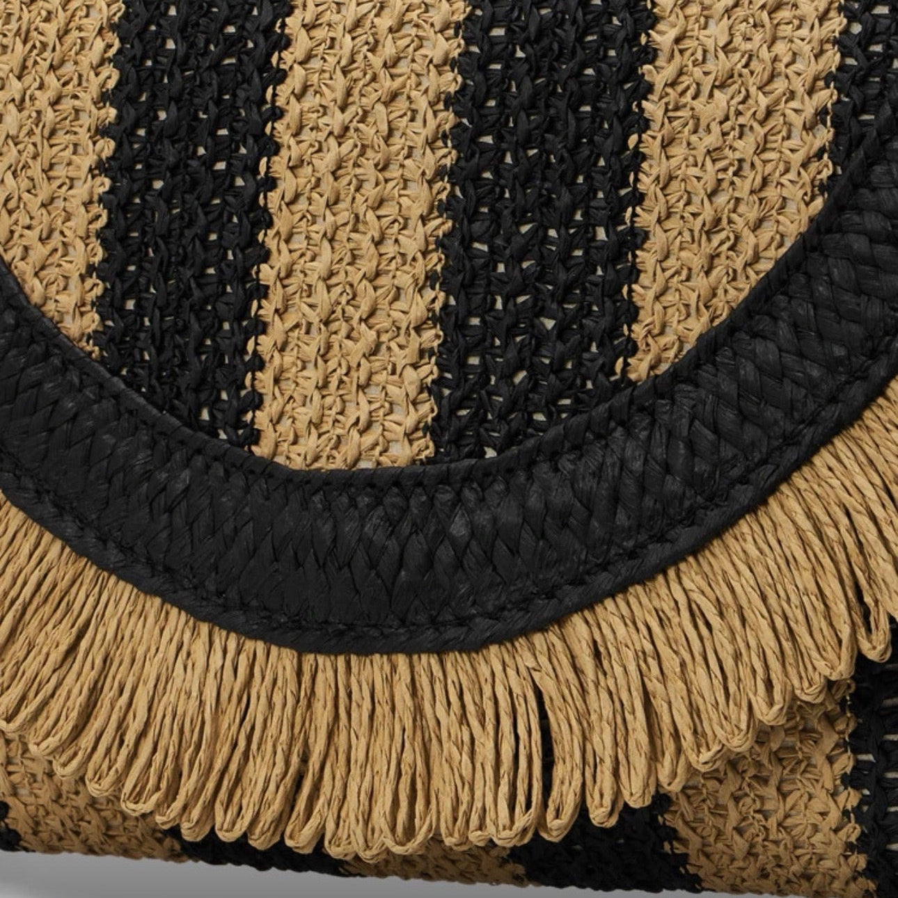 O design e aba frontal mantém a estética boho chic, enquanto o tamanho prático permite usar como bolsa de mão. Ideal para praia, viagens, passeios ao ar livre e composições frescas da estação.