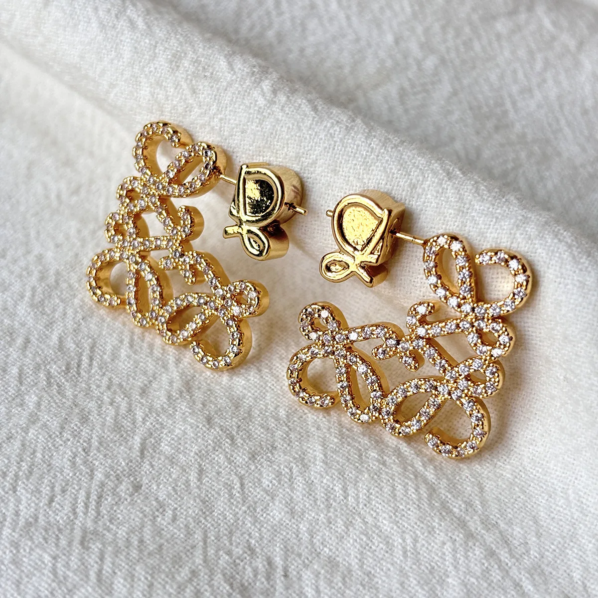 Brincos Geométricos Vazados com Cristais – Design Esculpido e Acabamento Luxuoso