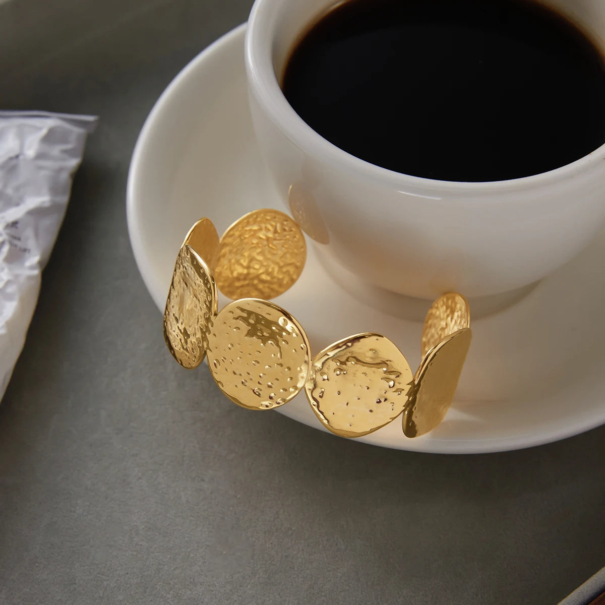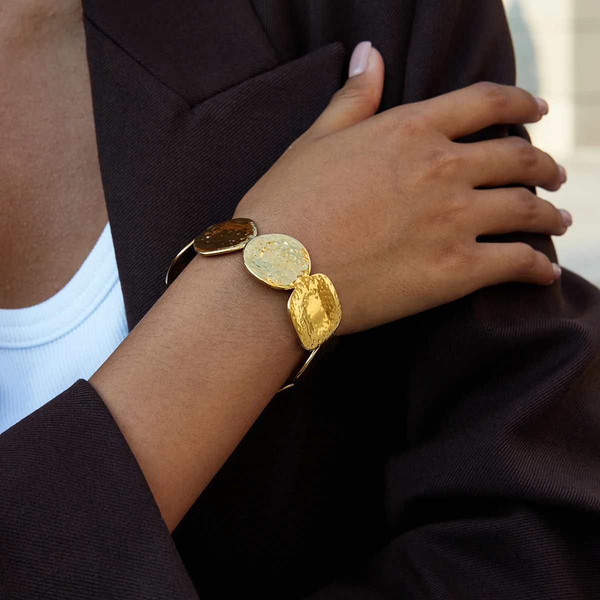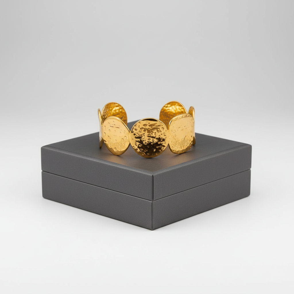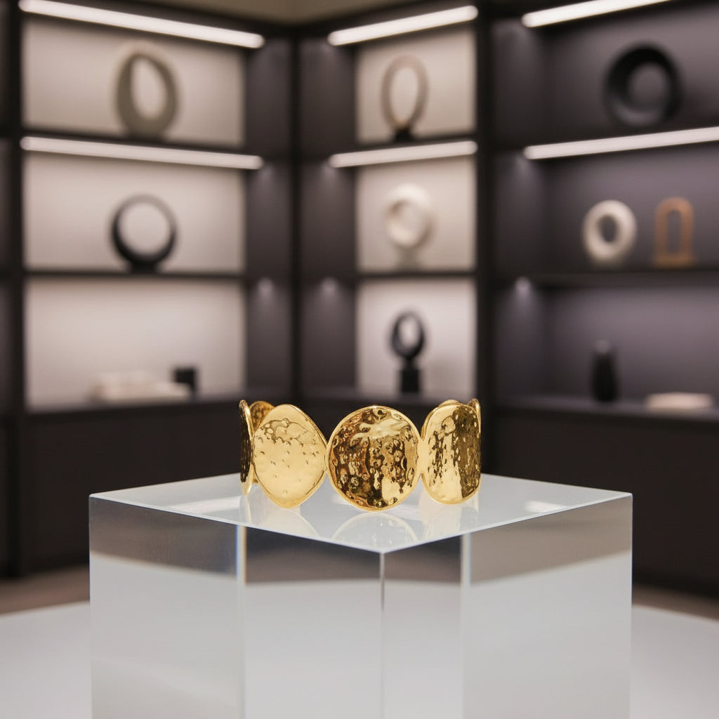 Pulseira Circular Martelada – Aço Inoxidável com Banho 18K, Design Moderno e À Prova d’Água