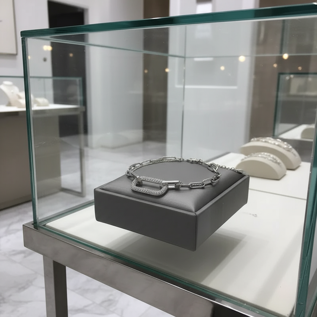 A pulseira possui estrutura ajustável, garantindo conforto e encaixe perfeito no pulso. Seu brilho metálico e formato geométrico fazem dela um destaque elegante e versátil para diferentes estilos.