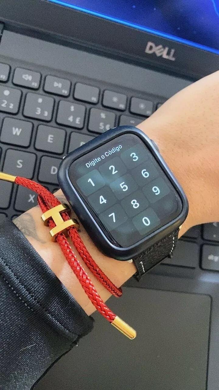 - Material: Metal + cordão vermelho