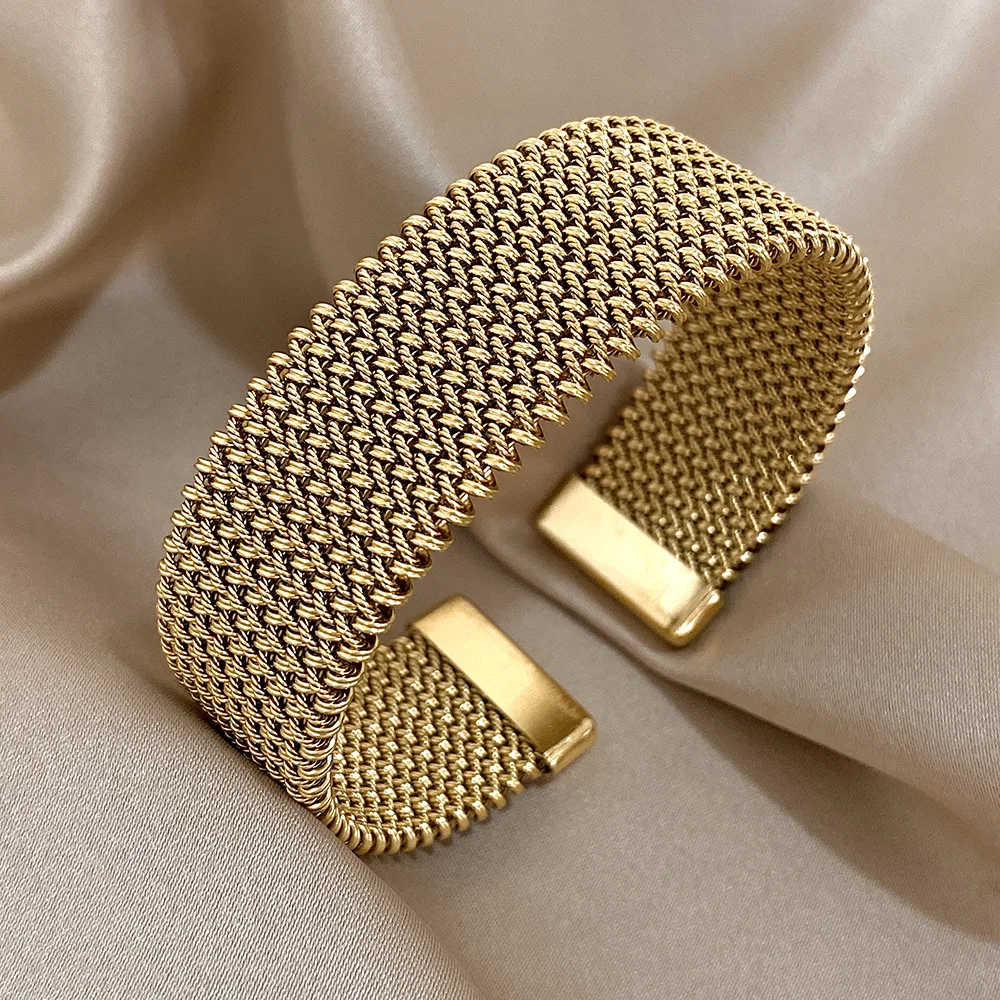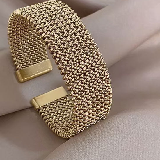 Com design robusto e elegante, esta pulseira trançada em aço inoxidável dourado é perfeita para quem ama estilo e versatilidade.